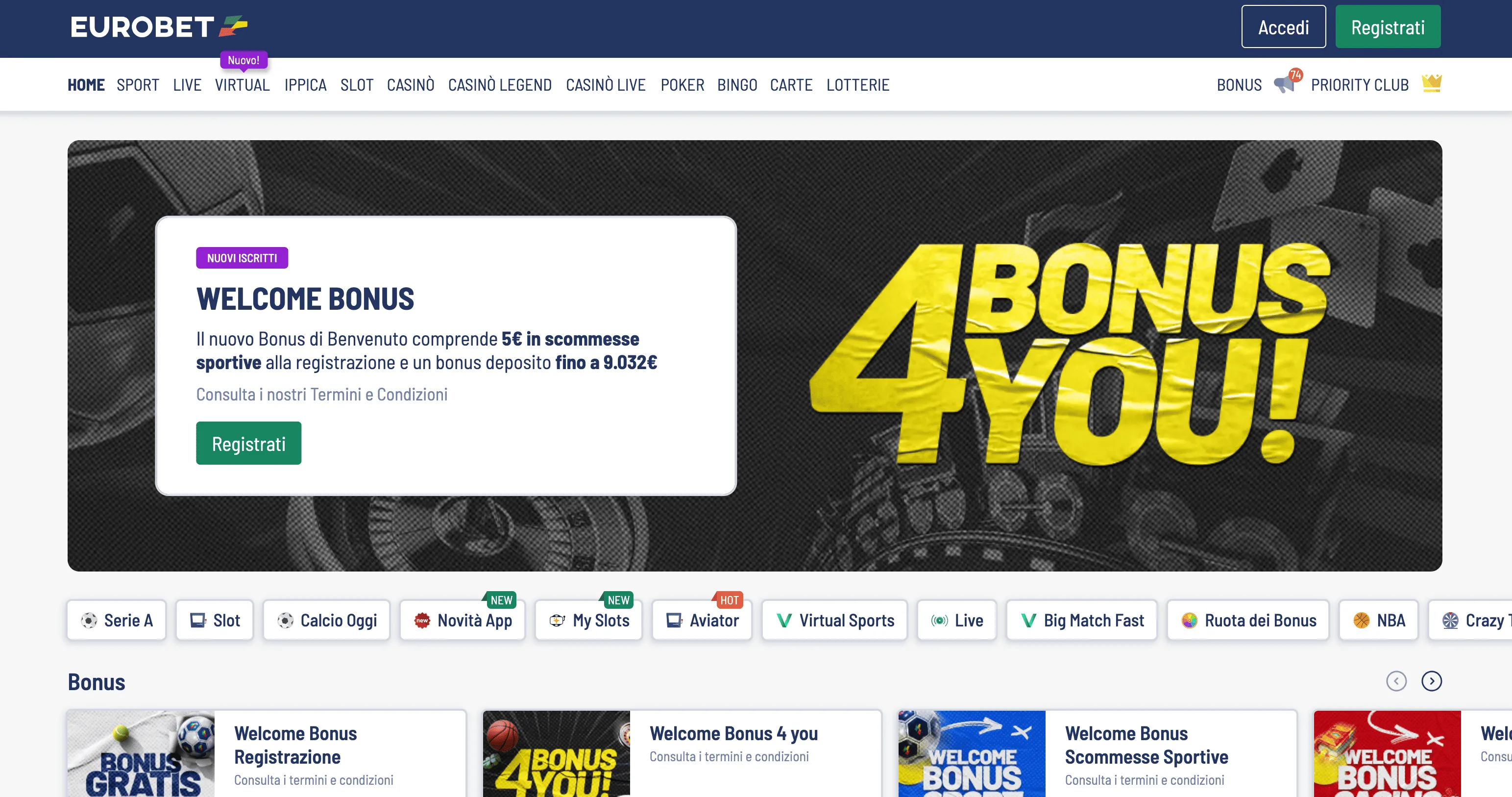 Il bonus di benvenuto è la promozione più comune offerta. Viene offerto ai nuovi giocatori sul primo deposito effettuato.