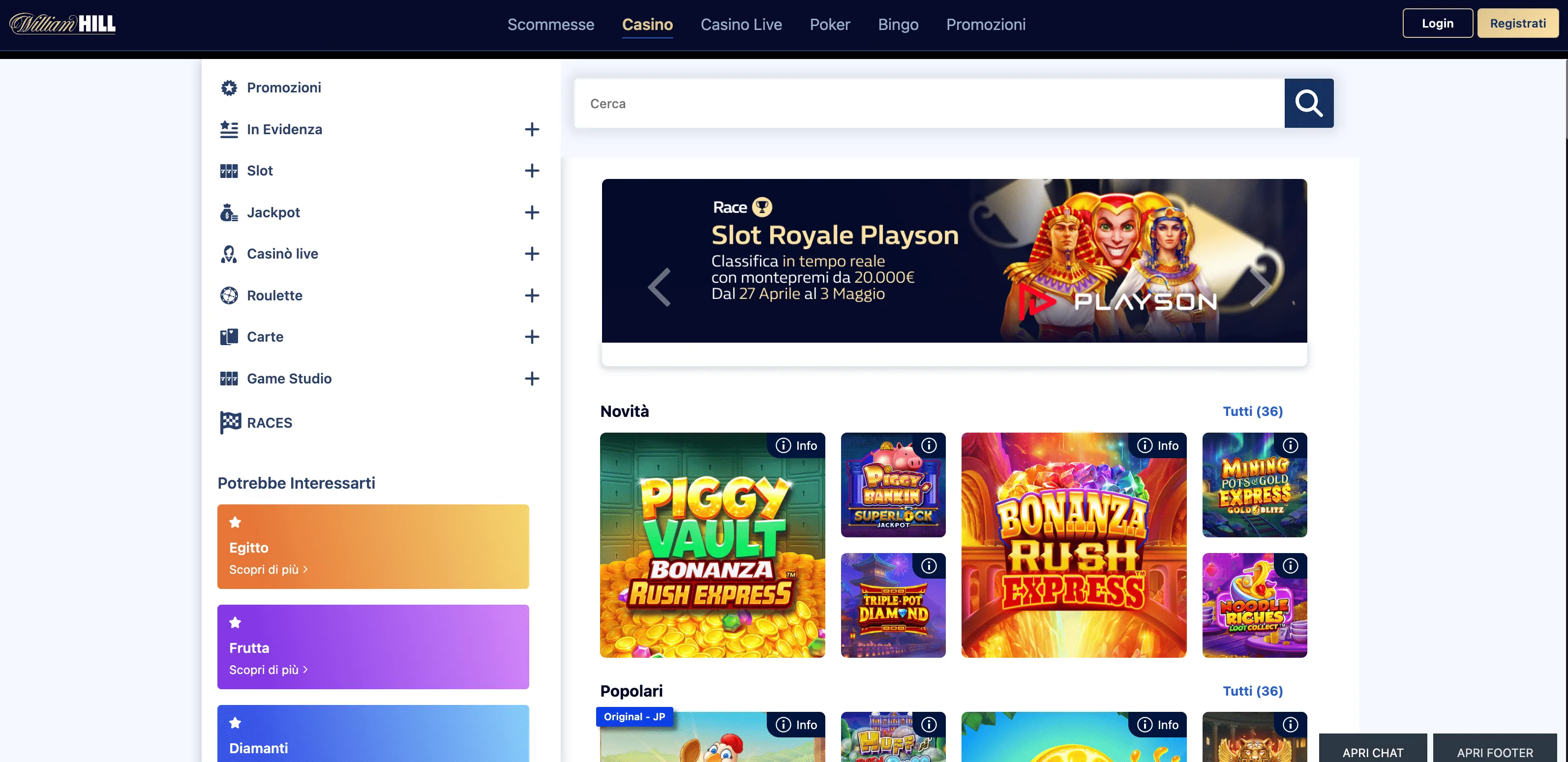 I jackpot progressivi accumulano premi milionari nel tempo. Una piccola percentuale di ogni scommessa alimenta il montepremi.